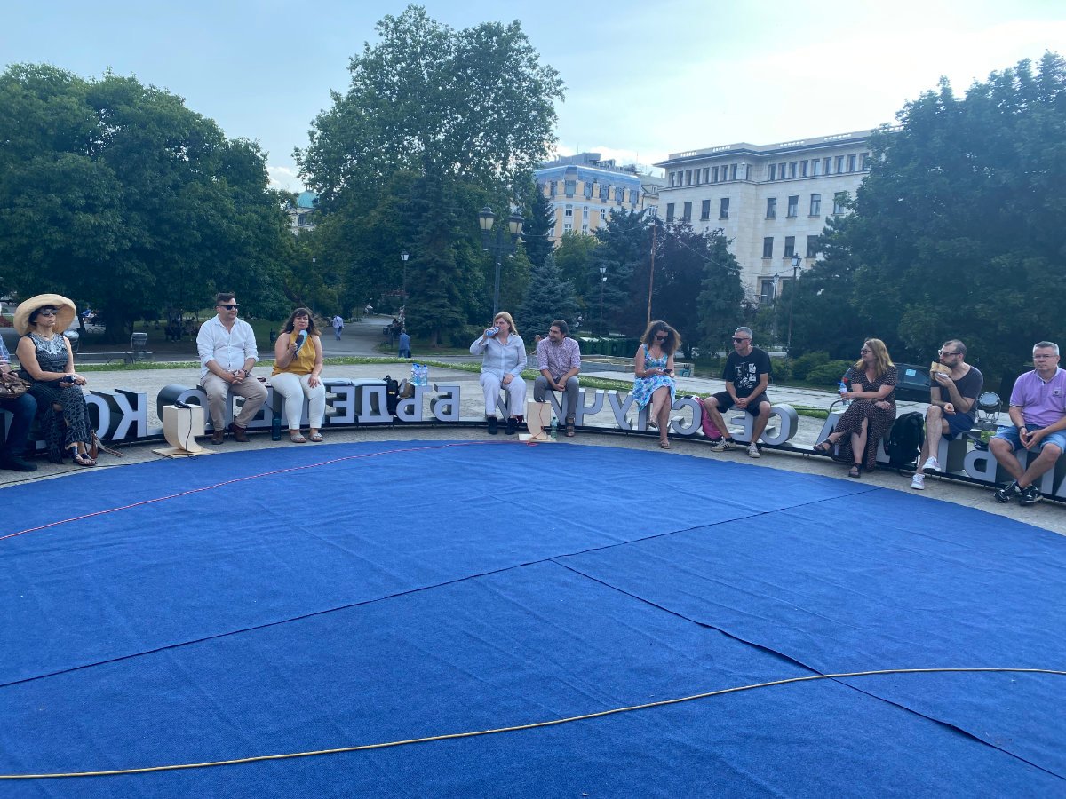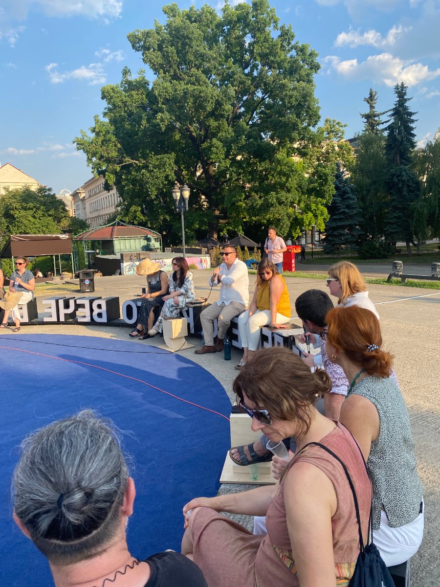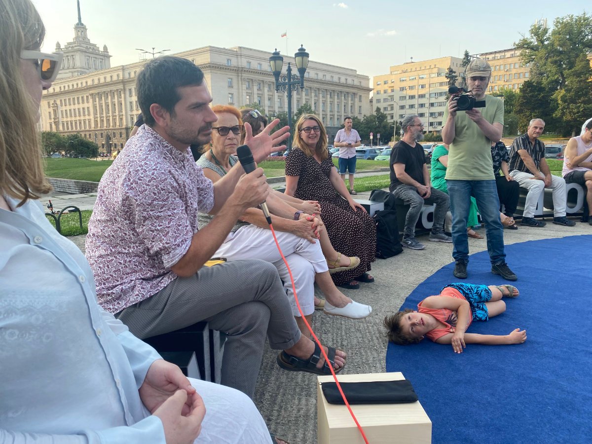 Third conversation in the series “BETWEEN THE PAST THAT IS ABOUT TO HAPPEN AND THE FUTURE THAT HAS ALREADY BEEN – CONVERSATIONS about society in time”, within the framework of the art installation of the same name by Krasimir Terziev. Placed in the heart of the City Garden, it is the visual and conceptual core of a series of conversations that seek to give voice to the deepest social anxieties, contradictions and opportunities for change.